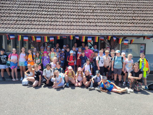 Als wir um 10 Uhr ankamen, gab es direkt ein französisches Frühstück. Danach haben unsere französischen Freunde mit uns eine Schul- und Kindergartenführung gemacht. Anschließend durften wir mit ihnen in einen Tanzraum gehen. Dort haben die Kinder uns einen Tanz gezeigt, den wir dann nachgetanzt haben. Nach dem Mittagessen durften wir noch spielen. Dann sind wir in die Sporthalle gegangen und durften zwei Stunden verschiedene Sportarten ausprobieren: Volleyball, Basketball, Tischtennis, Badminton und Bogenschießen.