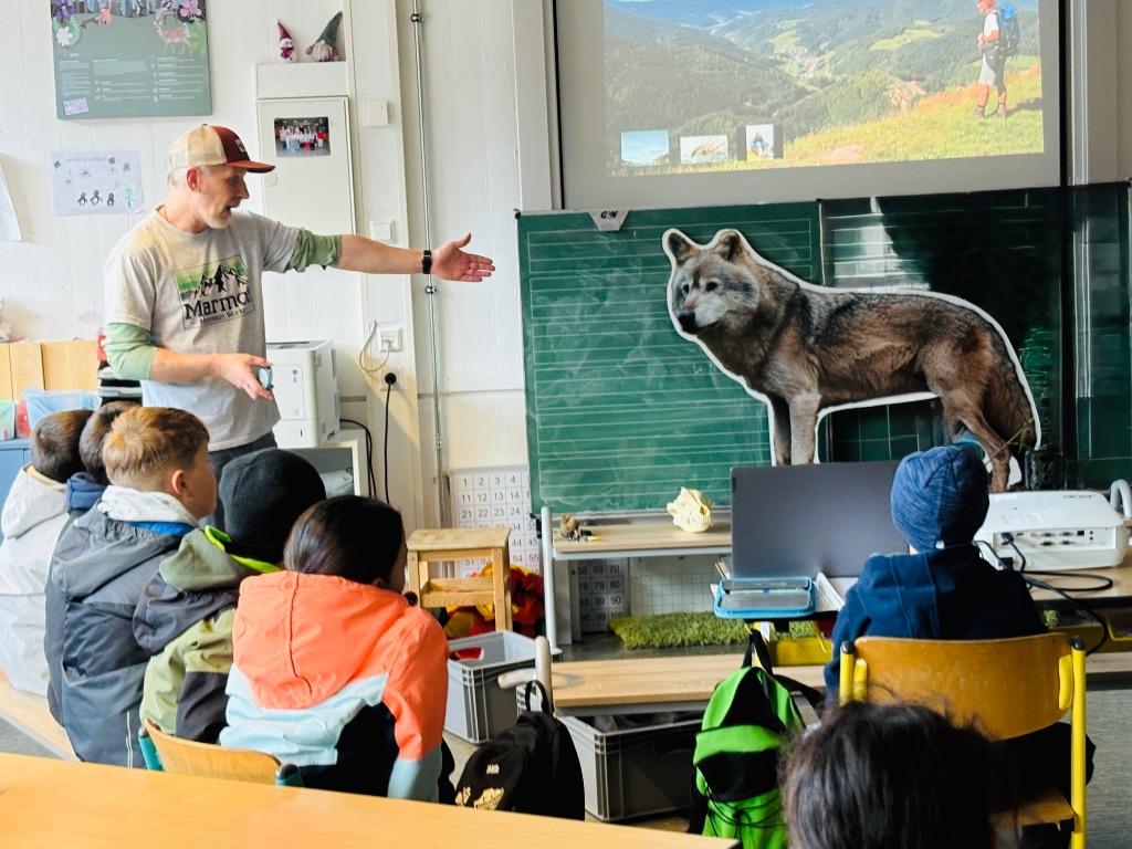 Mit großer Begeisterung erzählte er den Schülerinnen und Schülern Spannendes über den Wolf und den Luchs. Die Kinder erfuhren, wie diese Tiere leben, was sie fressen, wie sie jagen und warum sie wichtige Bestandteile unseres Ökosystems sind.